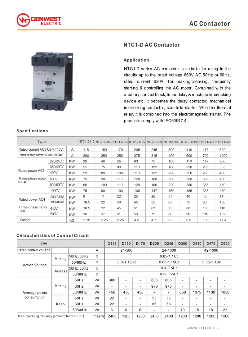 NTC1-D115 AC Contactor